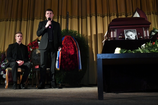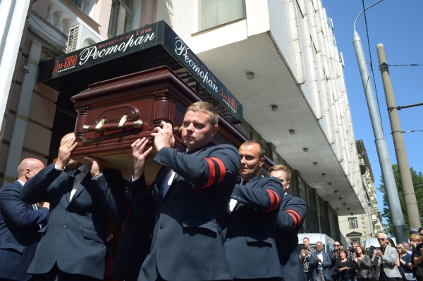 Вынесли гроб с телом артиста под аплодисменты поклонников и коллег.