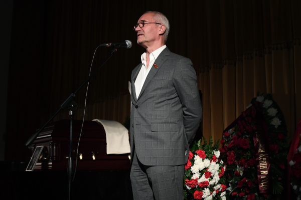 "Когда уходят художники, всегда возникает ощущение такого сиротства, обделенности. Как зритель, я не увижу еще неснятых каких-то фильмов с ним, еще не увижу на сцене и как друг, недообщаюсь. Вот то, что забирают с собой художники. Вот что вызывает боль. Вот что мы сегодня переживаем. Евгений Герасимов очень точно говорил о Шарикове, которая стала визитной карточкой, брендом, а на самом деле выдающимся достижением актерского мастерства. Очень жаль, что действительно ничего не было написано под него, спектакль не поставлен, не поставлена, не написана драма, может быть, комедия на него. Так что, Володя, прости, что тебя недосмотрели, скажем так. Очень любили и любим - во многом благодаря тебе - человека, человеку чужеродного характера, чрезвычайно деликатного, человека, который в основном был погружен в свое творчество, свою семью, своих детей. Слава Богу, они сидят здесь, мы их видим, и это внушает надежду на продолжение чего-то. И слава Богу, что современные технологии позволяют, когда это понадобится, когда захочется, пообщаться с тобой как с актером. Есть диски, есть телевидение. Я думаю, что это надолго, пропорционально творческой отдаче, с которой ты существовал в кинематографе и театре. Я говорил детям, Володя, твоим, что они должны знать и чувствовать, что мы - твои друзья, твои благодарные зрители, твои коллеги - разделяем боль, которую несут они. Я не знаю на самом деле, чувствуют ли это дети, не знаю, насколько это облегчает им, может быть, им не нужно это облегчение, не знаю. Но это нужно нам, нужно мне лично. Я должен ощущать, что часть боли забираю себе. Прощай, Володя! Спасибо тебе за то, что ты был. Замечательно, что ты остаешься в виде возможности общаться с тобой как с актером, глядя на экраны. Хорошо, что у тебя такие сыновья. Прощай, дорогой! Мы еще долго долго будем тебя помнить!".