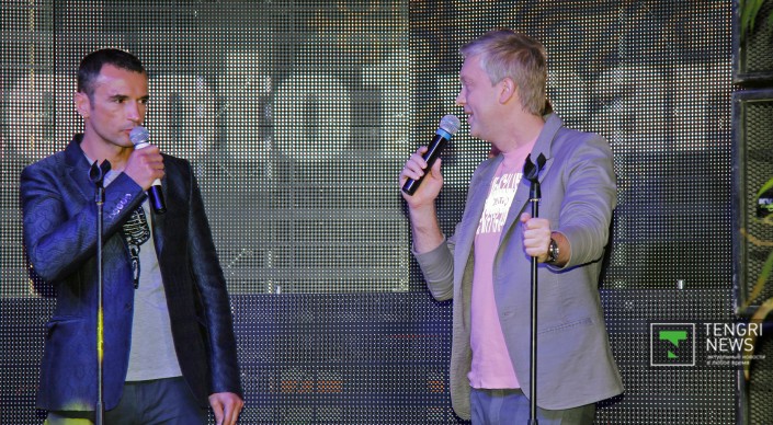 Вечеринка в честь дня рождения ресторана Светлакова состоялась в Алматы Сергей Светлаков и Александр Орлов на сцене. Фото © Николай Колесников