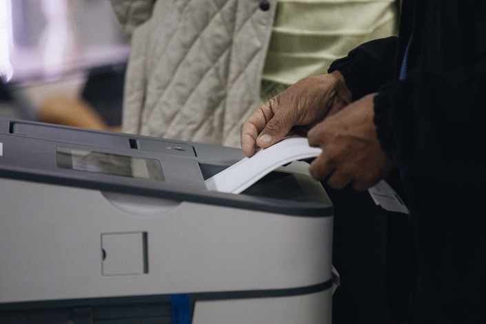 Избиратель идентифицируется с помощью отпечатков пальцев. Фото Tengrinews.kz