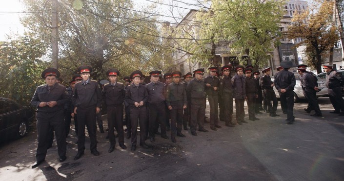 Построение милиции перед отправкой на охрану избирательных участков. Фото Tengrinews.kz.