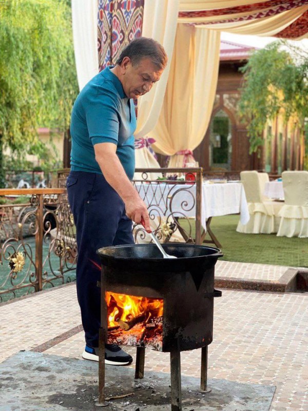 В Сети появилось фото стоящего у казана Шавката Мирзиеева, передает Тengrinews.kz.