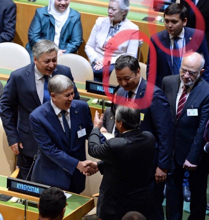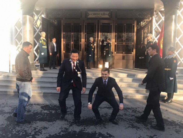 Позже руководитель отдела протокола аппарата президента Кыргызстана Мар Топоев (он изображен на снимке с нагрудным знаком президента) дал разъяснение по поводу случившегося.