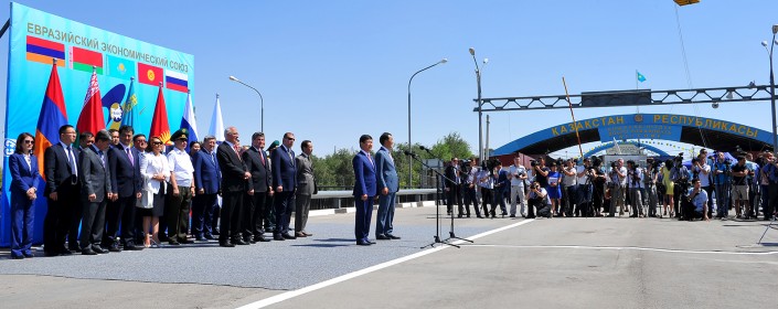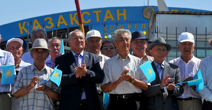 Таможенная граница между Кыргызстаном и Казахстаном снята в рамках вступления КР в ЕАЭС. Распоряжение об открытии границ через телемост дали президенты двух стран Нурсултан Назарбаев и Алмазбек Атамбаев, передает корреспондент Tengrinews.kz. Непосредственно в церемонии открытия таможенной границы приняли участие премьер-министр КР Темир Сариев и вице-премьер-министр РК Бакытжан Сагинтаев.