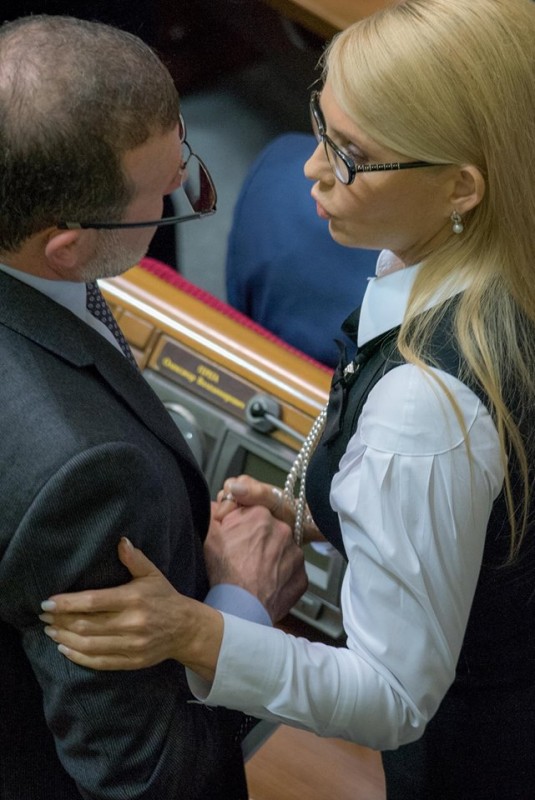 Как отмечают украинские СМИ, экс-премьер пришла в парламент без привычной косы на знаковое заседание Рады. Именно во вторник должна решиться судьба правительства Арсения Яценюка.
