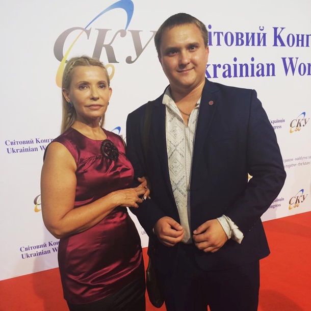 Руководитель украинской партии " Батькивщина" Юлия Тимошенко предстала в новом образе на Всемирном конгрессе украинцев, который состоялся в Киеве в субботу. Фото с политиком разместил на своей странице в Facebook общественный активист Алексей Захарченко.