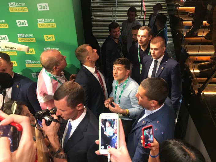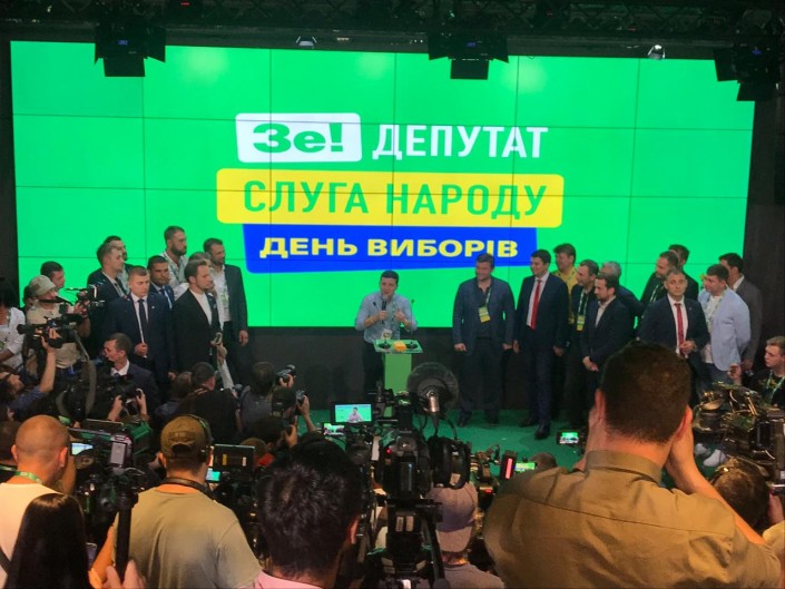 Специальный корреспондент Tengrinews.kz в Украине Жанна Нурланова провела ночь с 21 на 22 июля в штабе победителей, куда оперативно стекалась информация с избирательных участков от представителей партии. Команда "Слуга народа" выбрала то же место для работы штаба и пресс-конференций, что и на президентских выборах, - ночной клуб Champion Hall. Кроме самого Владимира Зеленского, которого представили как "фаната партии", в элитном заведении можно было увидеть новоиспеченных депутатов, членов Администрации президента, Совета нацбезопасности Украины и, конечно, бывших КВНщиков. Среди этой публики наверняка находился будущий премьер-министр и генпрокурор, которых в первые дни работы должен представить парламент, где "Зе!" уже имеет большинство.