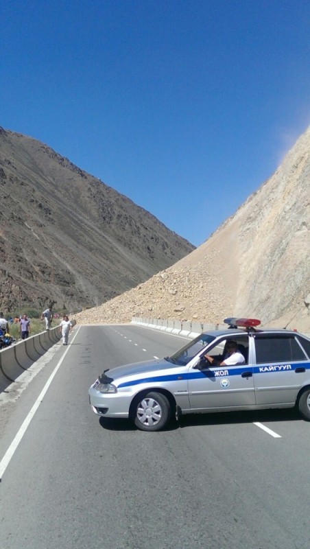 Министерством транспорта и коммуникаций, а также МЧС КР была перекрыта трасса в оба направления. На единственной дороге, ведущей в акваторию озера Иссык-Куль, движение блокировано полностью. Перекрыт участок дороги протяженностью в три километра. Дорожная техника уже приступила к очистке магистрали. С обеих сторон скопилось большое количество автотранспорта и людей, направляющихся на отдых на Иссык-Куль из Алматы и Бишкека, и возвращающихся обратно в столицу Кыргызстана или в Казахстан. Заблокирована и группа журналистов, которая освещала двусторонние переговоры президентов Нурсултана Назарбаева и Алмазбека Атамбаева, которые прошли утром, 12 августа, в Иссык-Кульской области республики.