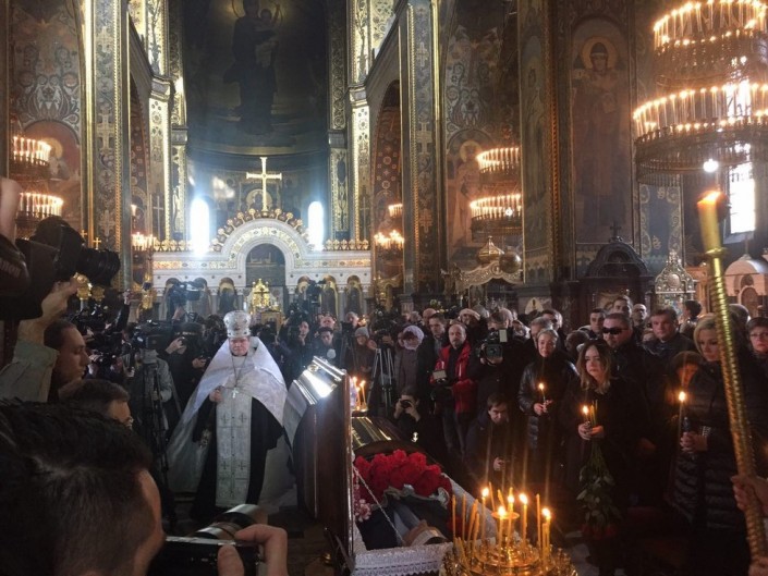 В Киеве началась церемония прощания с убитым экс-депутатом Денисом Вороненковым. Мужчину отпевают во Владимирском соборе в центре столицы Украины, а затем процессия отправится на Зверинецкое кладбище Киева. Как стало известно Лайфу, из морга тело Дениса Вороненкова забрали вчера. Внутри Владимирского собора прибытия гроба с телом покойного ждали несколько десятков журналистов. Конечно же, основное внимание СМИ приковано к вдове Вороненкова - оперной певице Марии Максаковой. На отпевание во Владимирский собор пришло около 100 человек, среди них был замечен экс-депутат Госдумы Илья Пономарев.