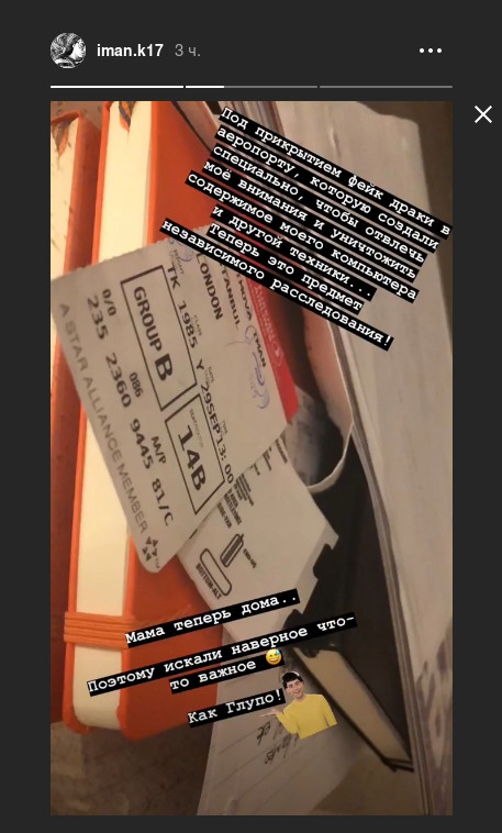 Из-за инцидента в аэропорту рейс, на котором должна была улететь девушка, задержали на полтора часа. Судя по stories Иман, ей удалось покинуть Ташкент только на следующий день, 29 сентября.