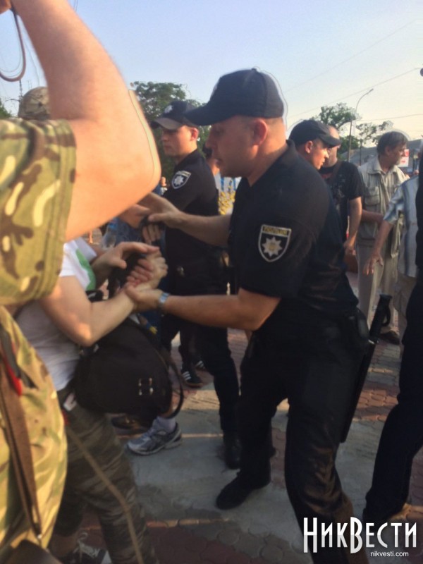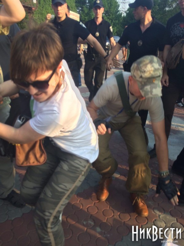 После перепалки с мужчиной в военной форме в депутата со стороны националистов полетели яйца. Затем произошла короткая потасовка. На месте присутствовали полицейские, приехала машина скорой помощи.