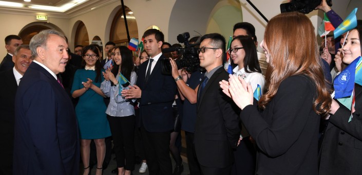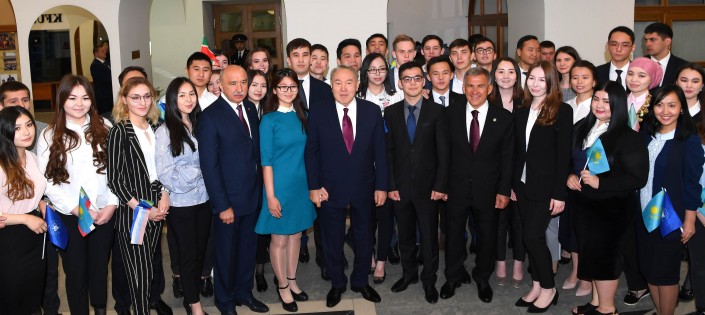 Перед встречей с профессорско-преподавательским составом Нурсултан Назарбаев побеседовал со студентами из Казахстана, проходящими обучение в Казани. Президент Казахстана пожелал молодым соотечественникам успехов и достижений в учебе.