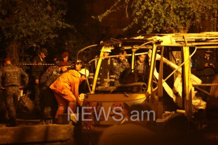 Мощный взрыв прогремел в пассажирском автобусе в Ереване поздно вечером 25 апреля. По последним данным, как сообщает РИА Новости, в результате погибли два человека, еще несколько получили ранения. В момент взрыва в салоне находились девять пассажиров (среди них трое подростков) и водитель (он остался жив). Все пострадавшие являются гражданами Армении.