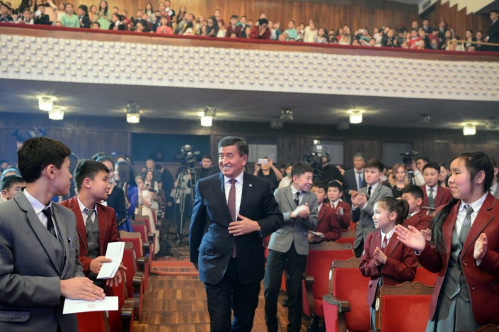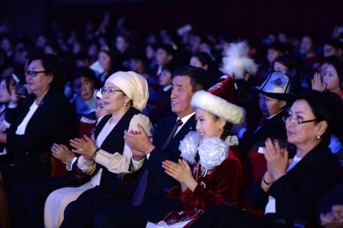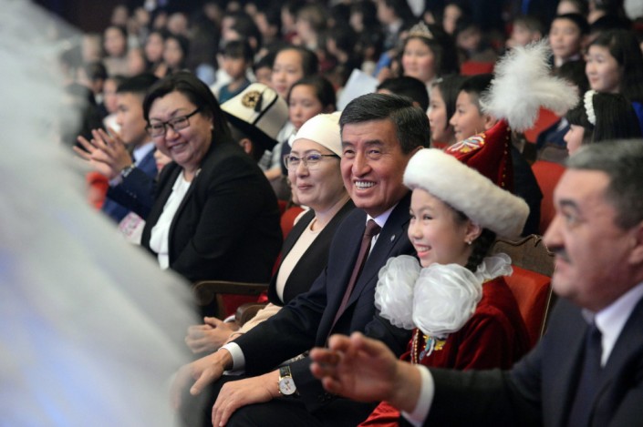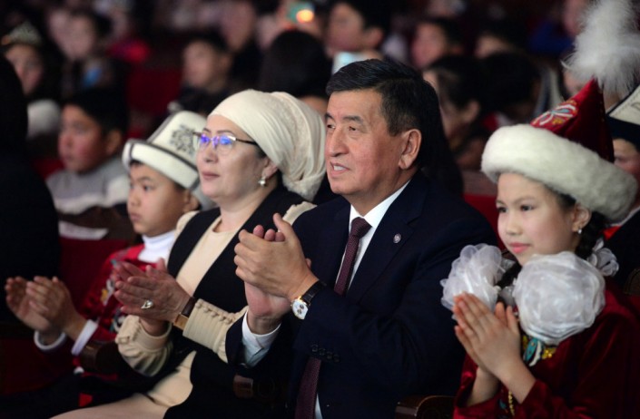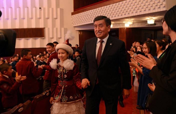 Президент Кыргызстана Сооронбай Жээнбеков и его жена Айгуль приняли участие в новогоднем представлении для детей, которое состоялось 28 декабря в Бишкеке. Об этом сообщает пресс-служба главы государства.