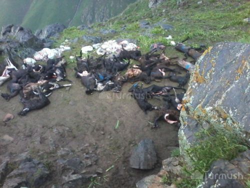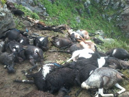 По словам чабана, молния ударила прямо в отару овец, в результате чего 120 животных погибли на месте, еще 145 овец, испугавшись, спрыгнули с обрыва. Сам чабан не пострадал. "До пастбища Суук Тобо тяжело добраться за один день. Чабан хотел перейти через перевал со стадом, однако стемнело и он не успел. Он поручил двум помощникам установить палатки. После того, как чабан согнал скотину, он зашел в палатку, чтобы переодеться, так как промок. И в это время ударила молния, которая убила сразу 120 овец", - рассказали очевидцы.