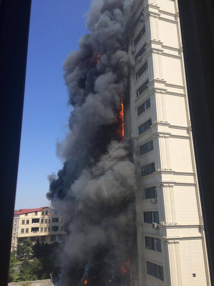 Из-за пластиковой облицовки здания огонь очень быстро распространился на все этажи. За короткое время 16-этажное здание на проспекте Азадлыг сгорело практически полностью. Пожар полностью парализовал движение на проспекте. На верхних этажах здания огонь тушили с помощью вертолета. Ликвидация пожара заняла около четырех часов.