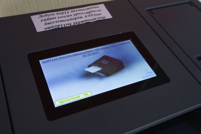 В ЦИК Кыргызстана рассказали, что вместо обычных урн используются урны, считывающие бюллетени в автоматическом режиме. Данные системы после завершения голосования передаются с участка на сайт ess.shailoo.gov.kg, где можно оперативно получать информацию о предварительных итогах голосования. Однако эти подсчеты не имеют юридической силы. Как пояснили на избирательном участке, после окончания выборов будет проводиться ручной подсчет бюллетеней.