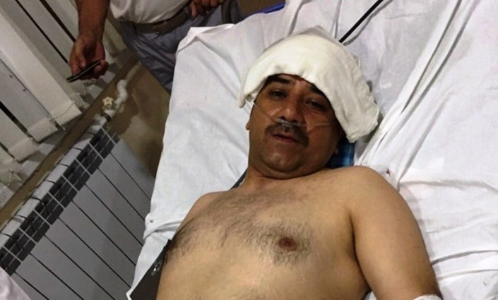 Жарақат алған ІІБ тергеу бөлімінің басшысы Абдурасул Шомирсаидов. © Исфара әкімдігінің баспасөз қызметі