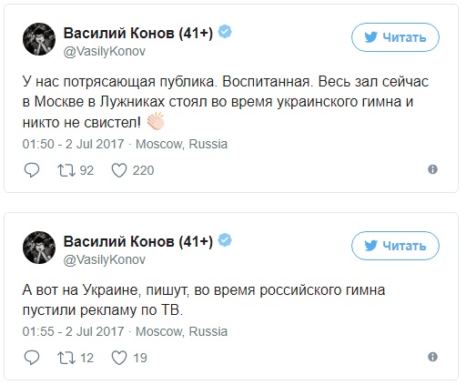 В Москве прошел боксерский поединок между россиянином Александром Поветкиным и украинцем Андреем Руденко. Перед началом титульного боя по традиции были исполнены национальные гимны. Во время исполнения украинского гимна практически весь зал встал.
