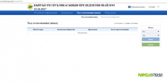За день до начала выборов президента Кыргызстана на сайте ЦИК страны ess.shailoo.gov.kg странным образом появились первые результаты голосования, сообщает Kaktus.media.