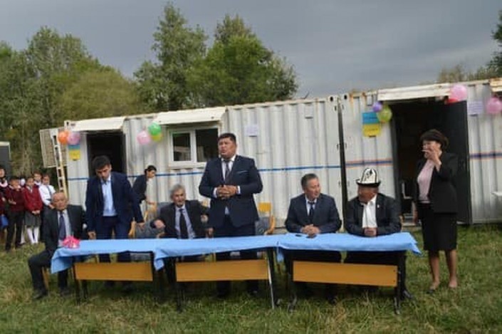 Открытие школы из контейнеров в селе Кенеш, Кыргызстан. Фото с Facebook @Toktosyn Shambetov