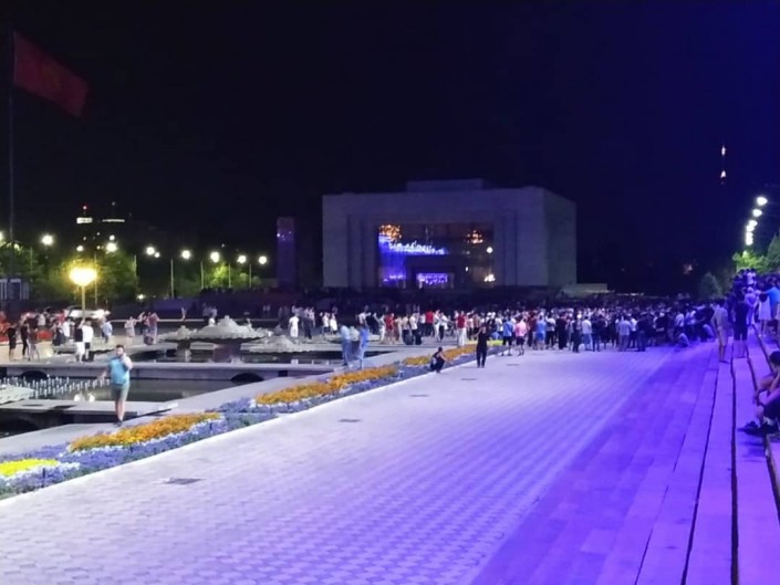 Некоторые горожане, проходящие мимо, призывают молодых людей не мусорить, но их никто не слушает. Некоторые из собравшихся скандируют "Сооронбай, кетсин!". Часть людей от площади двинулись к "Белому дому".