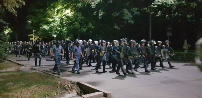 Милиция идет на площадь для разгона демонстрантов.