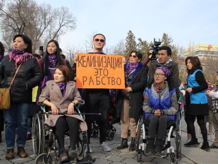 Марш, приуроченный к 8 Марта, проходит в Бишкеке уже четвертый год. Организаторы акции выступают против усиления патриархата, насилия в отношении женщин и девочек, "келинизации".