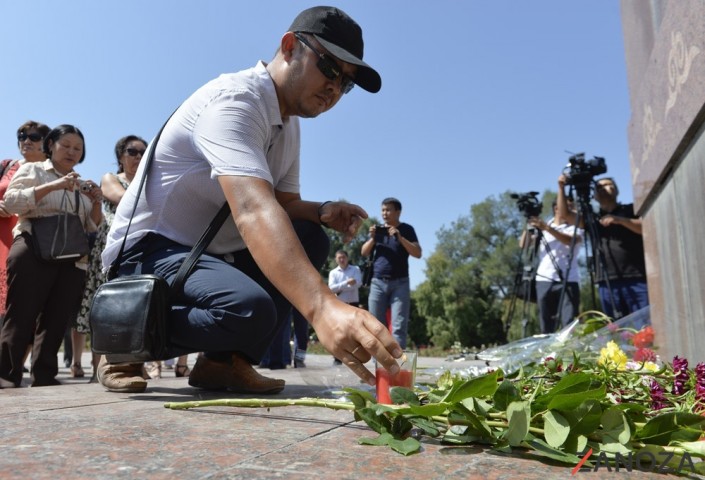 Власти Кыргызстана направят делегацию в Москву для помощи родственникам погибших в пожаре Траурная акция в Бишкеке. Фото: Zanoza.kg