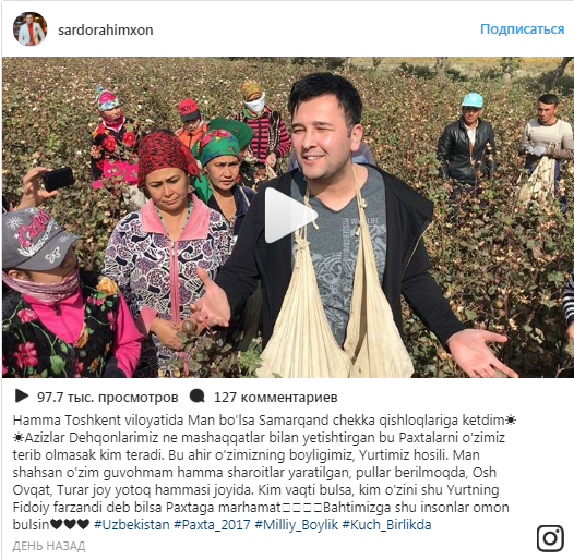 В Узбекистане более 100 известных артистов кино и эстрады, а также представители их фан-клубов были привлечены в эти выходные к сбору хлопка на поля, сообщает Подробно.uz.