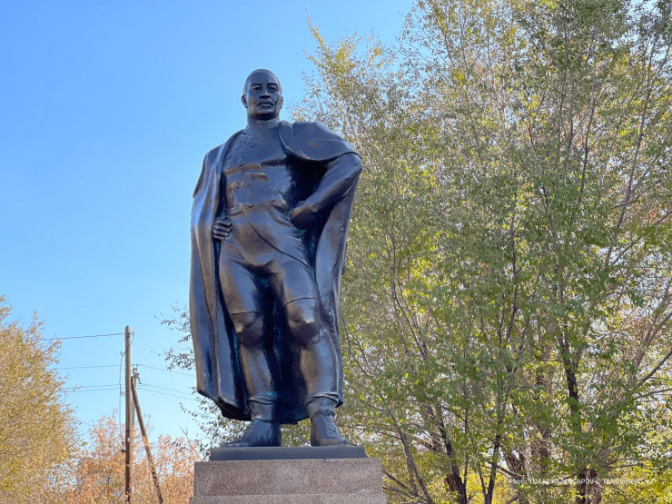Отметим, общая высота памятника составляет 5,7 метра (постамент - 2,2 метра, скульптура - 3,5 метра). Авторы - Жалын Бауркан, Болатбек Салаев.