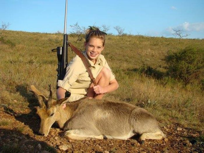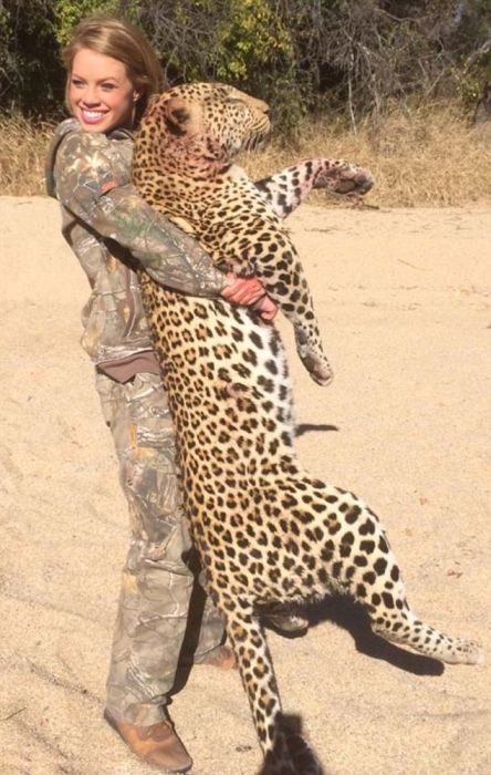 Со слов девушки, которая, кстати, является участницей группы поддержки в Техасском университете, отстреливая редких животных, она, наоборот, спасает их от вымирания.