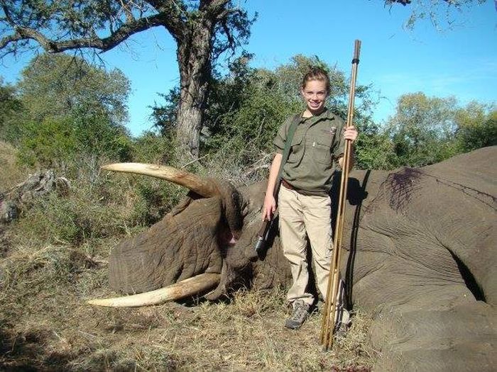 По словам Кендалл, впервые в Африку она попала вместе с папой в возрасте девяти лет, а первое крупное животное убила в возрасте 13 лет. "Я хотела начать с "большой пятерки", поэтому первым животным, которое я застрелила, был белый носорог, - написала американка в Facebook. - В этой поездке я также охотилась на антилопу и горных козлов. На 28-й день сафари я подстрелила слона с помощью "Ремингтона" 416 калибра".