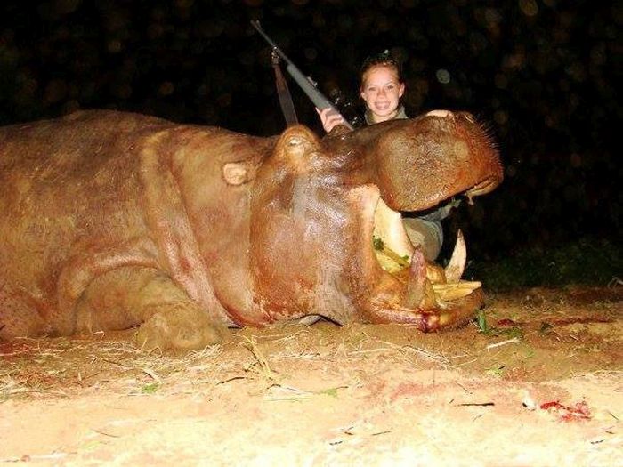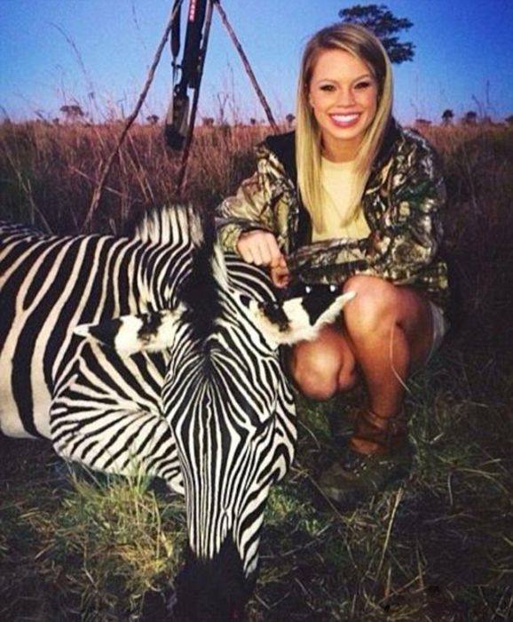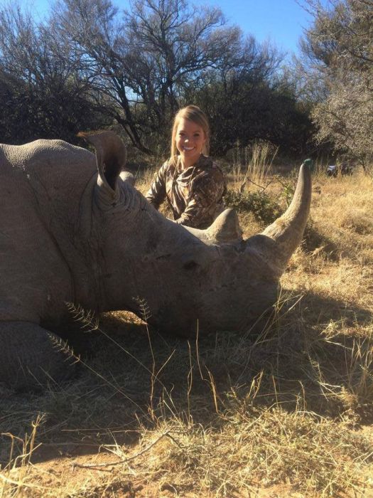 19-летняя Кендалл Джонс из города Клиберн в штате Техас навлекла на себя гнев огромной армии пользователей из-за своего жестокого хобби. С виду милая и симпатичная девушка увлекается охотой на редких и исчезающих животных Африки - носорогов, львов, буйволов, леопардов, слонов, бегемотов и других. Фотографии, на которых хрупкая американка с белозубой улыбкой позирует рядом с убитыми ей на сафари окровавленными трупами зверей, Кендалл выкладывает на своей странице в Facebook.