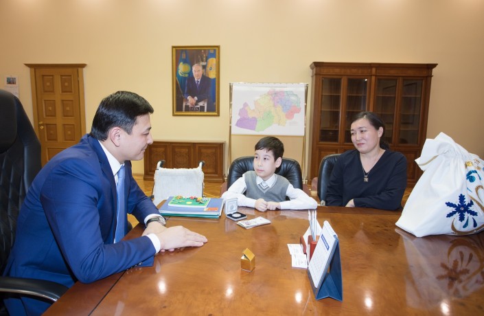 Аким ЗКО исполнил желание 8-летнего мальчика и показал ему свой кабинет