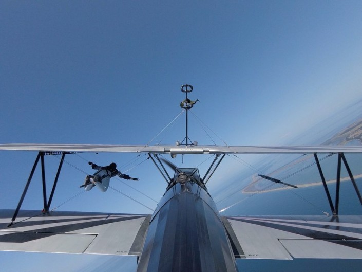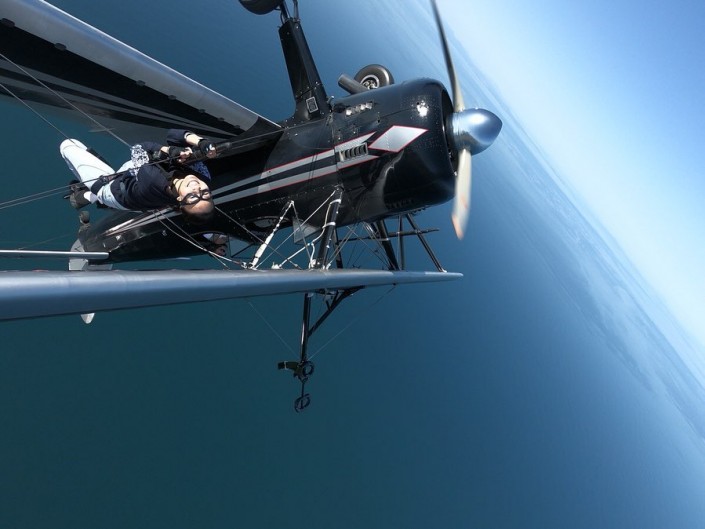 "Только у него была не прогулка, а просто полет. Это когда человека на земле прикрепляют, с ним взлетают, совершают трюки и спускают. Потом я узнала про академию Mason Wing Walking в США, там обучают прогулке по крылу самолета - это называется wing walking.