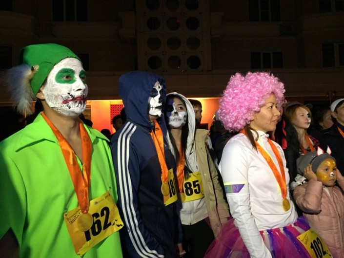 В Алматы 200 человек пробежали по лестницам в костюмах к Хэллоуину