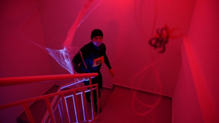 Забег по ступеням в закрытом помещении проходит в Казахстане второй год подряд. Как отметили организаторы, в этом году участников ожидало не только спортивное, но и праздничное мероприятие, приуроченное к Хэллоуину. Организаторы подготовили особую, присущую этому празднику, атмосферу: необычные костюмы, игру света и теней в здании и снаружи, звуковое сопровождение в лучших традициях хоррора.