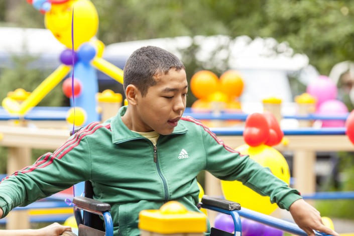 Игровая площадка была установлена в центре Ассоциации родителей детей-инвалидов "АРДИ" при поддержке Ассоциации деловых женщин Алматы и ОФ Sport Concept. Площадки снабжены специальным пандусом для детей-колясочников.