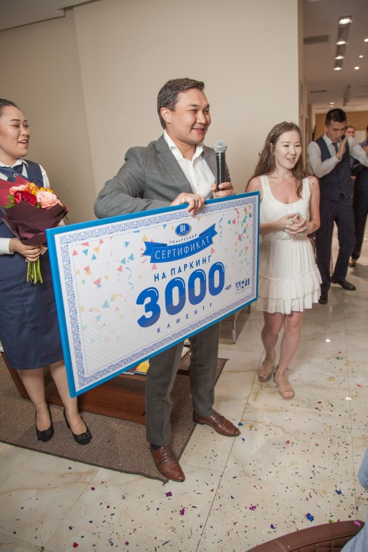 "Мы ни о чем таком не думали, не ждали сюрприза! Нам позвонила менеджер Айтолкын, сказала, что нужно совместно рассмотреть какой-то вопрос. Мы приехали к трем часам, строго в назначенное время. Оказалось, нас ждал подарок, и мы стали 3000-ми клиентами BI Group в Алматы", ‒ поделился Серикхан Копжасаров.
