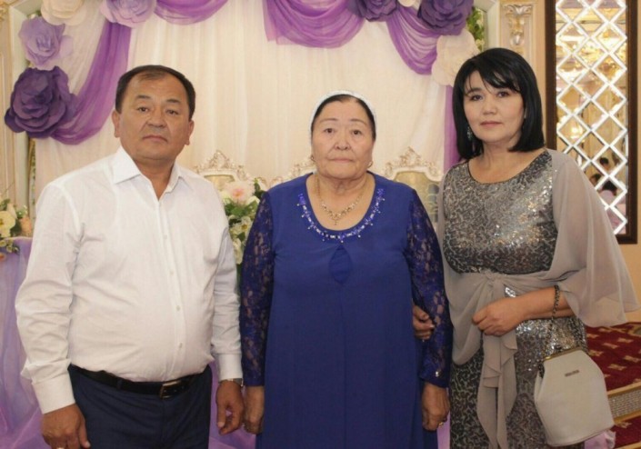 Зүбайра Нұржаева үлкен ұлы Сейдуалымен және келіні Дарихамен. Суреттер Нұржаевтар отбасының жеке мұрағатынан алынды.