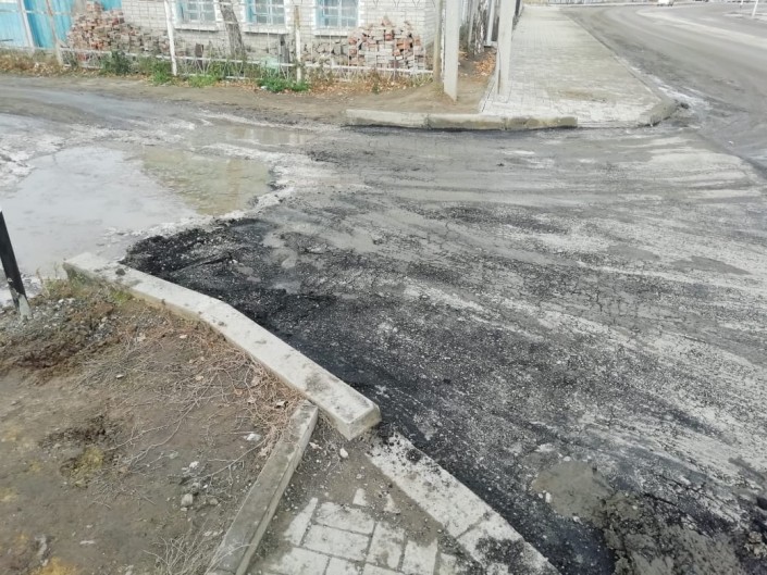 Асфальт уложили поверх лужи в Костанае