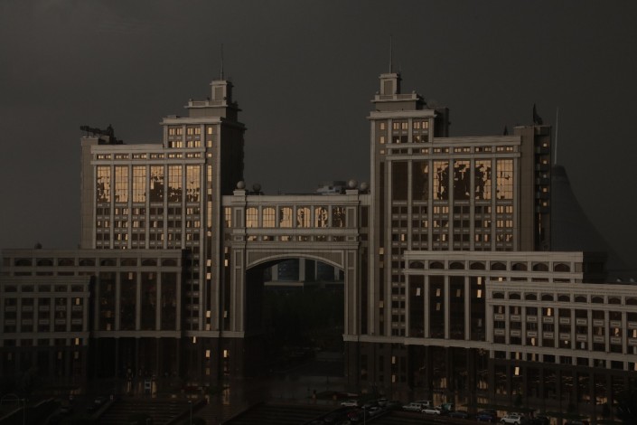 С утра в разных частях столицы можно было наблюдать разную погоду. Если на левобережье надвигались тучи и ожидался дождь, то на правом берегу Астаны была ясная и солнечная погода. Уже ближе к полудню центр столицы накрыли густые, черные тучи.