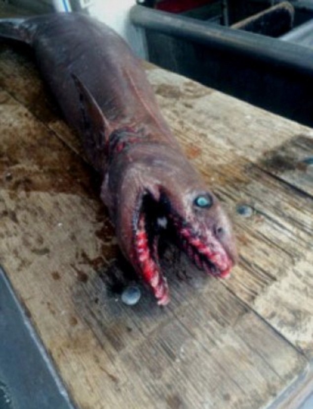 Также сообщается, что рыбаки вытащили доисторическую акулу с глубины около 700 метров. Обычно этот вид обитает на глубинах не ниже 1500 метров.