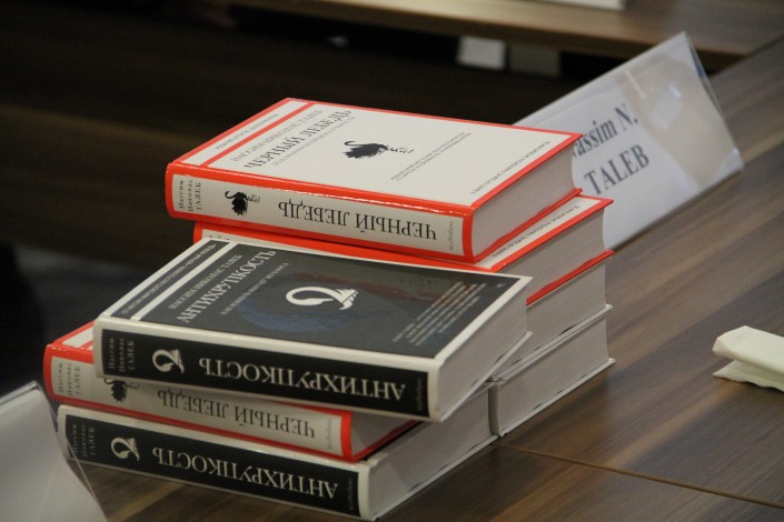 "Книги Нассима Талеба стали мировыми бестселлерами. Совместно с Фондом Первого Президента РК - Лидера Нации мы хотели бы предложить перевод издания "Черный лебедь. Под знаком непредсказуемости" на казахский язык", - отметил в ходе встречи с Талебом директор ИМЭП Ержан Салтыбаев.