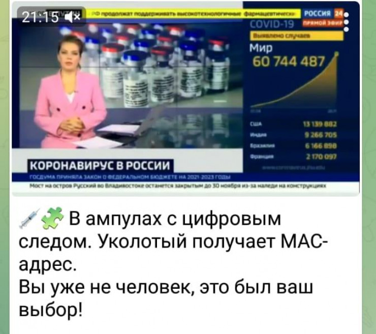 Желі қолданушылары арасында жаңалықтар шығарылымынан алынған үзінді тарап жатыр. Сюжетте COVID-19-ға қарсы вакциналарда белгілі бір цифрлық із бар екеніне дәлел табылғаны айтылады.