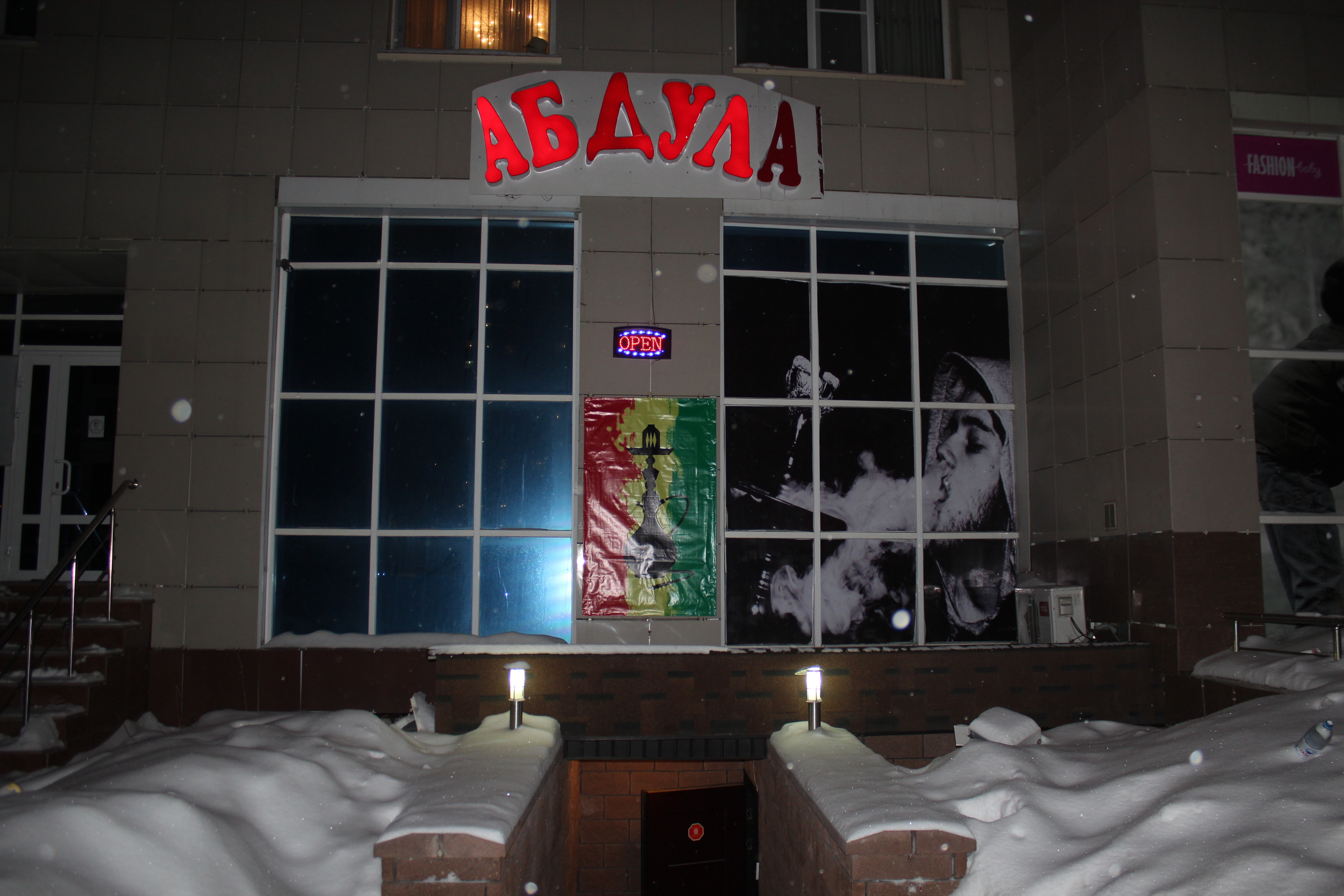 Теперь бар называется "Абдула". Под вывеской красуется новый баннер, говорящий о том, что из себя представляет данное заведение. Ранее, вместо портрета мужчины, была изображена девочка. Кстати, расположено заведение в одном из спальных районов Астаны. В момент визита корреспондента Tengrinews.kz в зале посетителей не было. Бармен пояснил, что это кальянная и еду тут не подают.