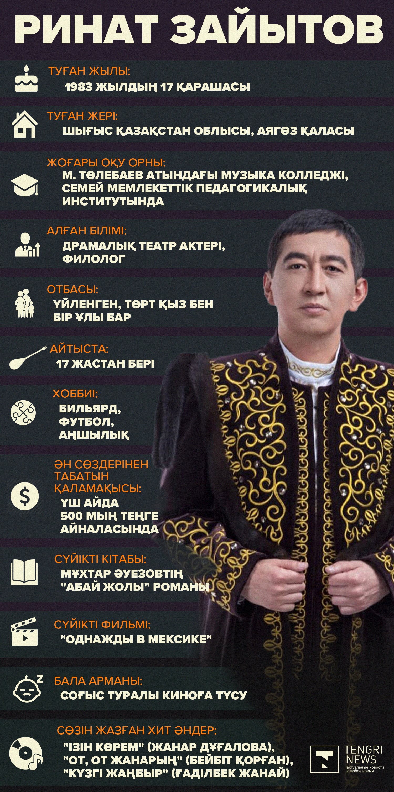 Артынша халық Алматыда Масанчи мен Қабанбай батыр көшелерінің қиылысындағы полиция ғимараты алдына жиналған. Сол кезде Ринат Зайытов оларды тағы да сабырға шақырып, үйге тарауын өтінген болатын. Сол оқиғадан кейін Желіде Ринат Зайытов туралы сұрақ көбейген. Тengrinews.kz тілшісі айтыскер туралы мәліметтерді жинап шықты.