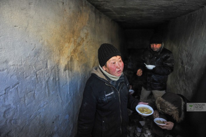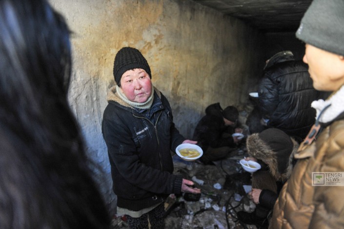 Бомбоубежище в старой части Астаны. Вместе с волонтерами Денисом и Анарой, которые периодически кормят людей, живущих на улице, мы спускаемся в подземелье, где живут бездомные.