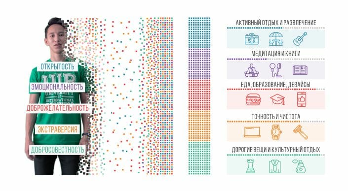 Исследования выявили четкую связь между цифровым психологическим портретом личности по модели "большой пятерки" - группа личностных качеств и черт (экстраверсия, открытость, сознательность, согласие, эмоциональная стабильность) и выбором покупателя на основе анализа "цифрового следа" в социальных сетях.